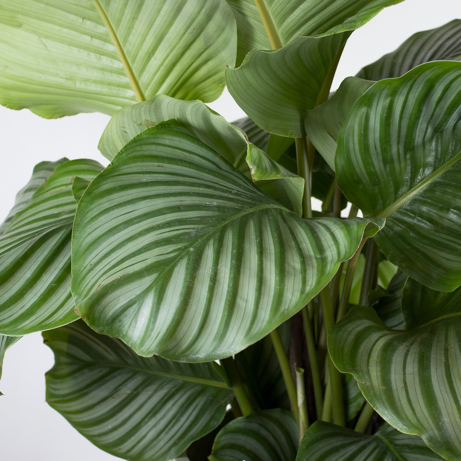 Calathea orbifolia zaujme svými velkými, oválnými listy s výrazným, světle zeleným žebrováním. Od května do srpna se mohou na stoncích nebo u listů rostliny objevit drobné bílé kvítky.