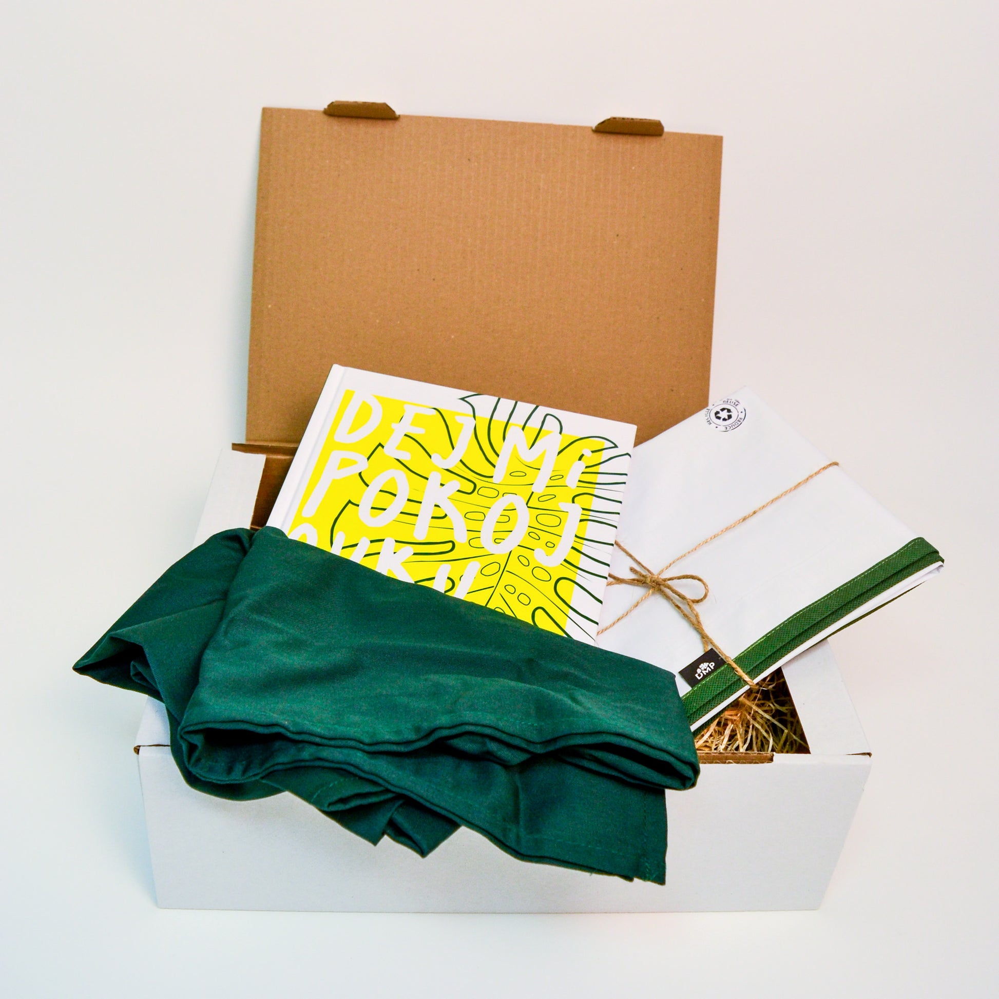 Dárkové balení pro všechny, kteří se chtějí stát pěstiteli pokojovek. V dárkovém setu najdete naší knihu Dej mi pokojovku, zástěru ve firemní barvě DMP a přesazovací podložku.