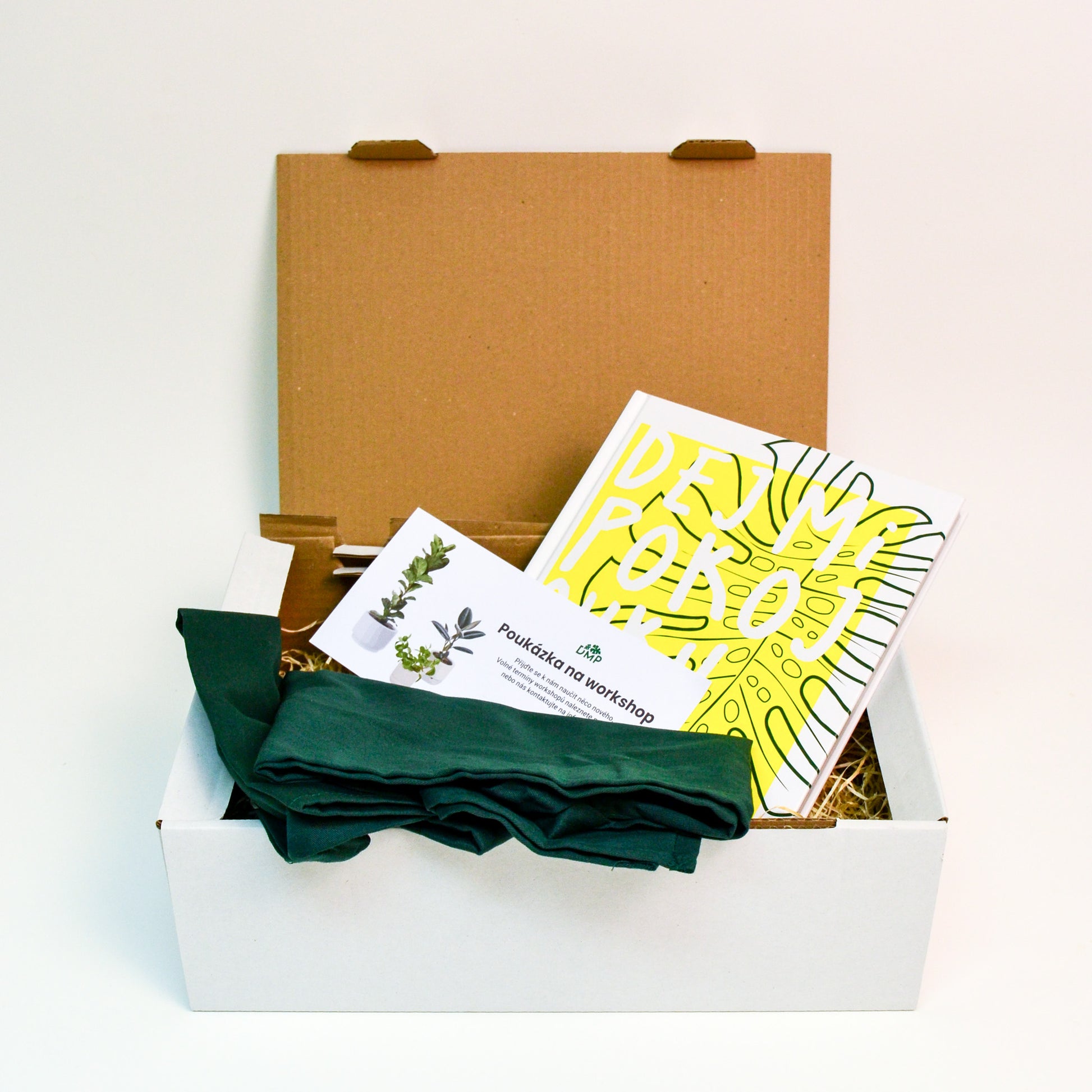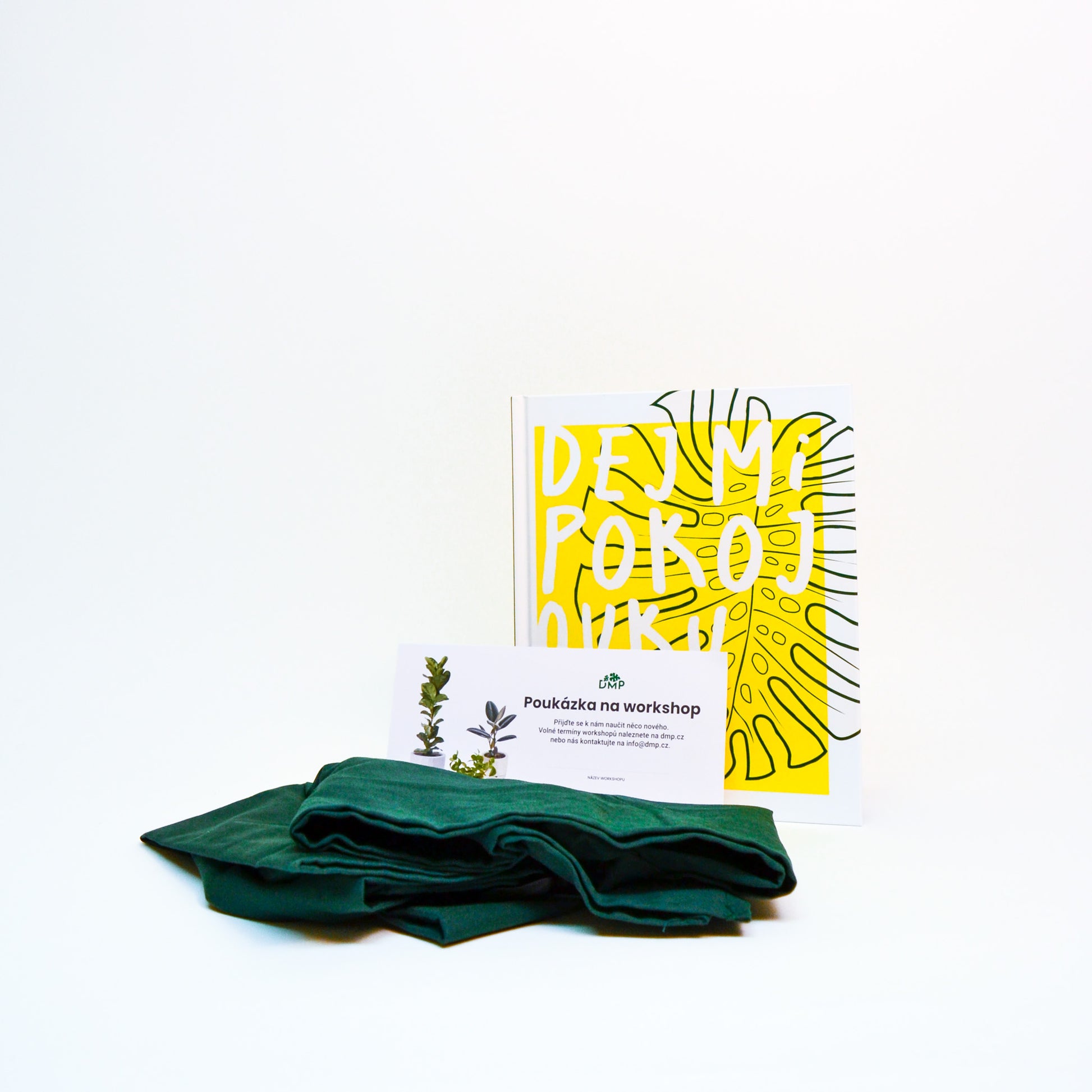 Dárkové balení pro všechny, kteří se chtějí stát pěstiteli pokojovek. V dárkovém setu najdete naší knihu Dej mi pokojovku a zástěru ve firemní barvě DMP. Tento set dokupujete k workshopu.
