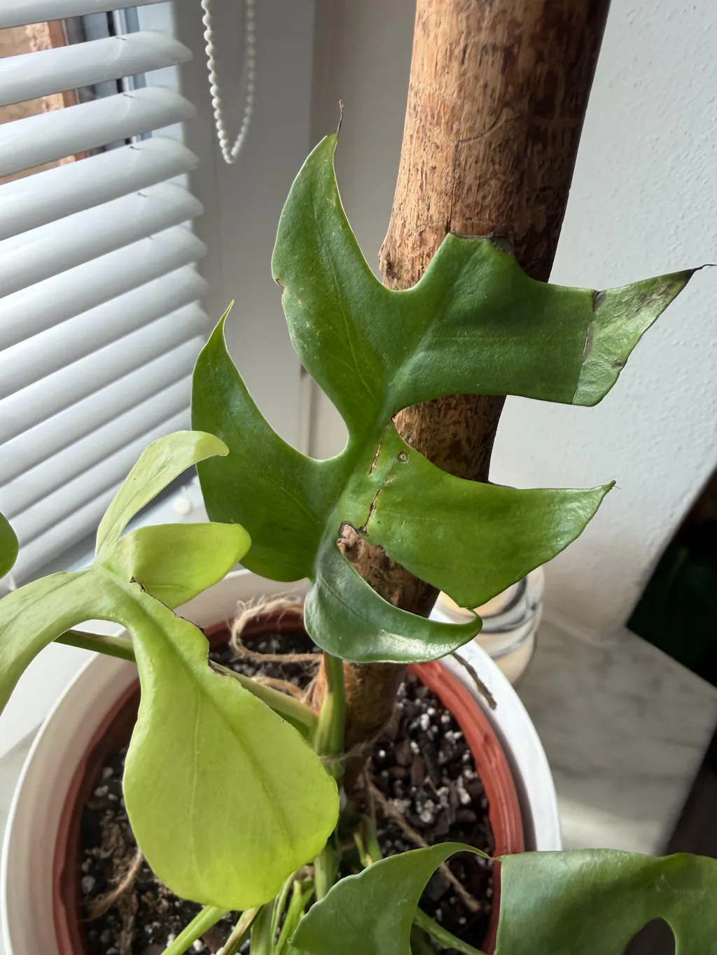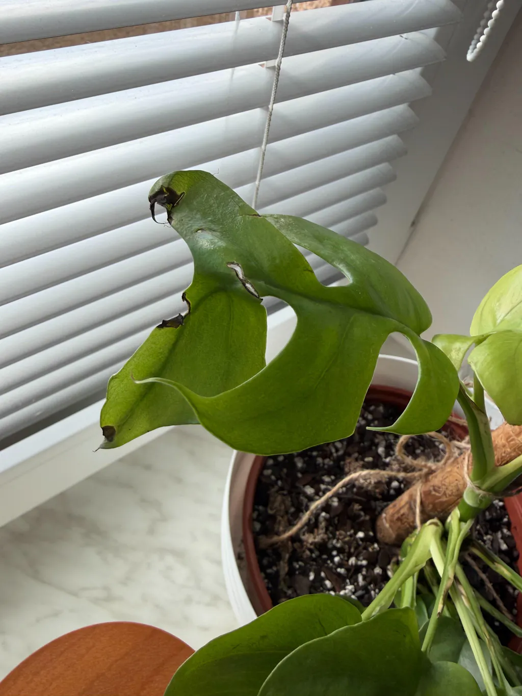 Rostlina má pár poškozených listů, což bych za cenu skoro 600 Kč vůbec nečekala. Navíc dorazila v promáčknutém a prasklém plastovém květináči, ale to se mohlo stát během přepravy bez pochybení eshopu. Znovu bych už ale vzhledem ke kvalitě rostliny neobjednala.