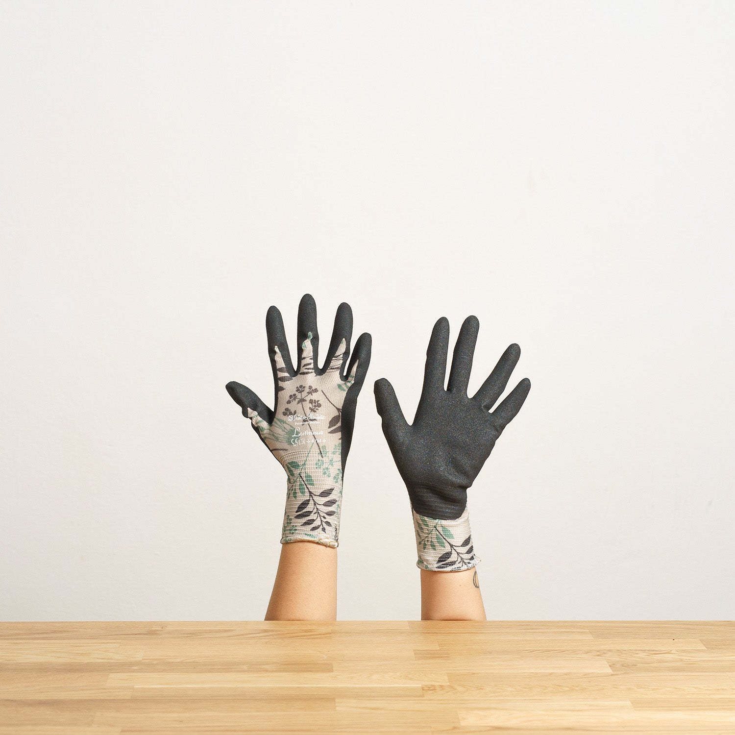 Zahradní rukavice Rosteto při použití v interiéru - bezešvá rukavice z jemného úpletu (13 Gauge) z elastického polyesteru. Mají prodloužený pletený okraj, díky němuž je ruka chráněna před kopřivami nebo nečistotou vysoko nad zápěstím. Navíc chrání ruce před UV zářením.
