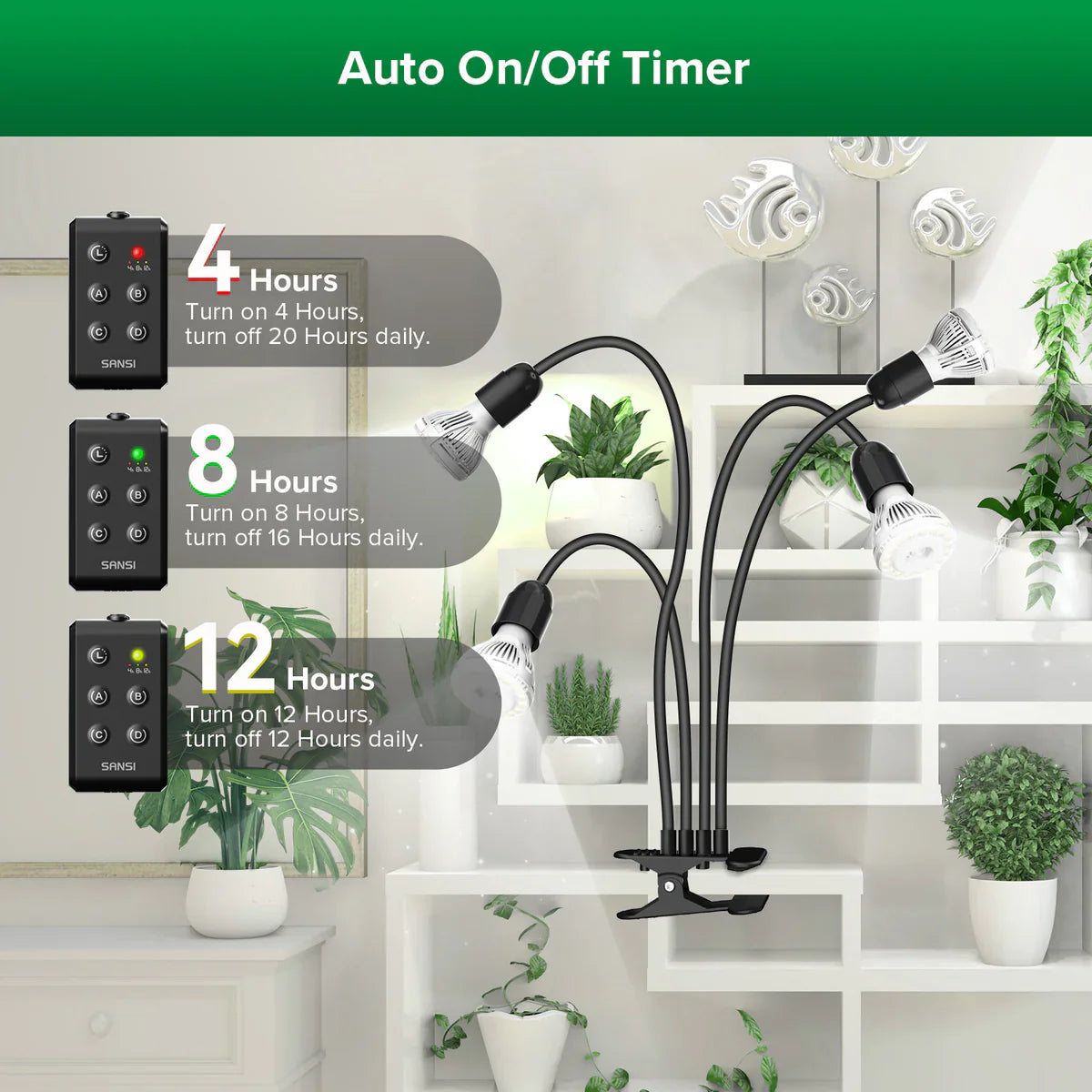 SANSI 40W LED nastavitelná lampička pro růst rostlin s časovačem