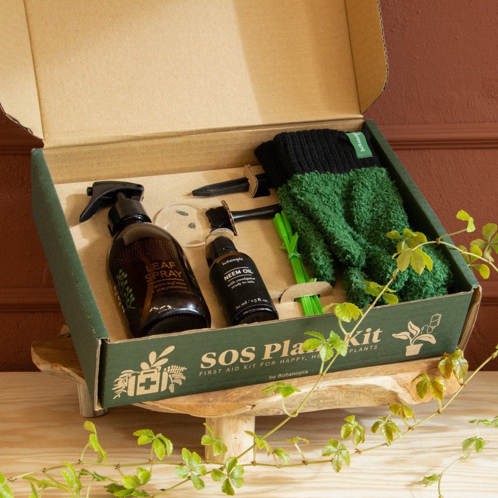 SOS dárkový box první pomoci pro pokojovky je ideální pro všechny, kdo chtějí mít po ruce „rostlinnou lékárničku“ a nepanikařit pokaždé, když se na listech objeví něco podezřelého.