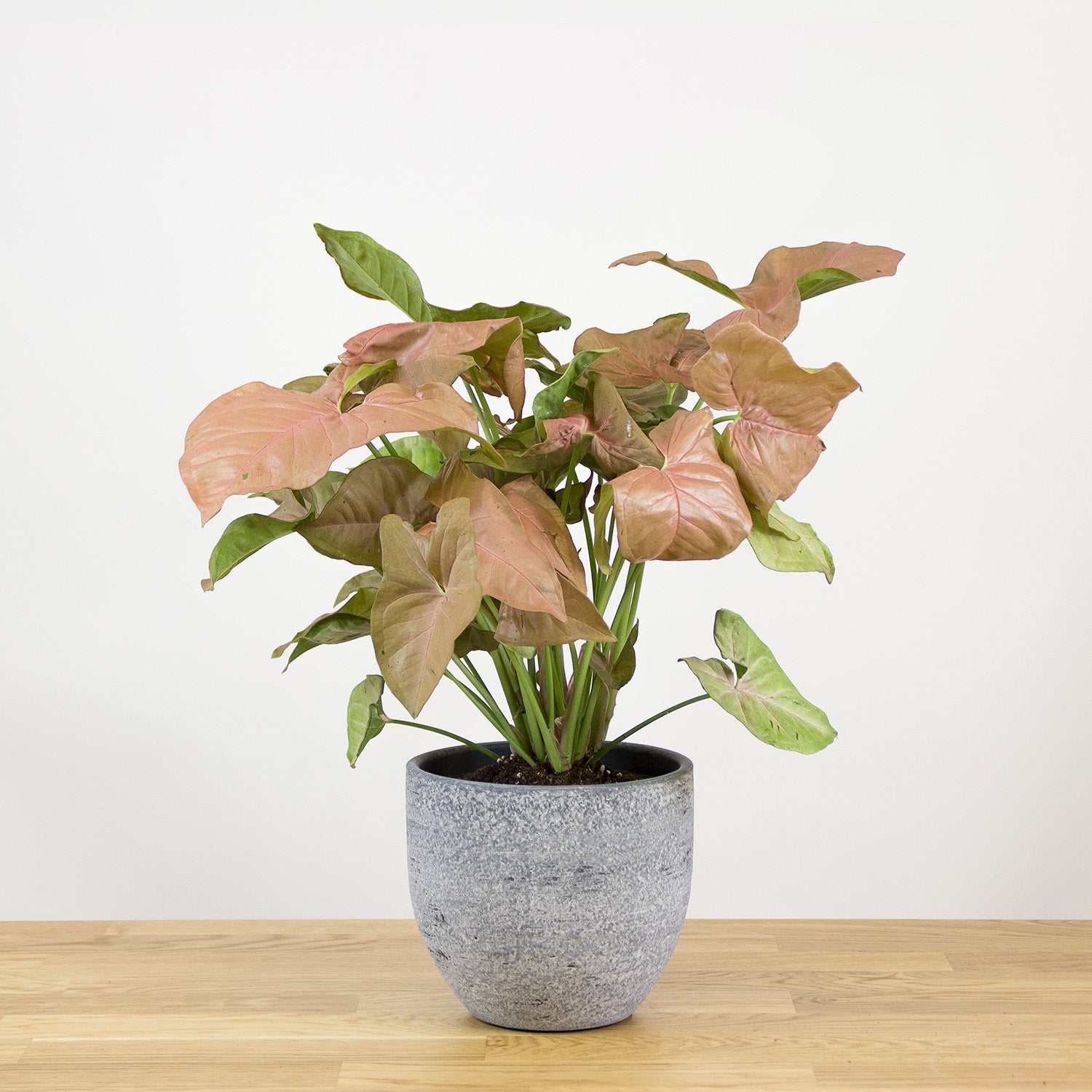 Syngonium Neon Robusta "Pink" je charakteristický svými shora světle růžovými listy. Ze spodní strany jsou zelené. Při dostatku světla může toto syngonium být zářivě barevně s broskvovou barvou, při nedostatku světla jsou listy více vybledlé až zelené.